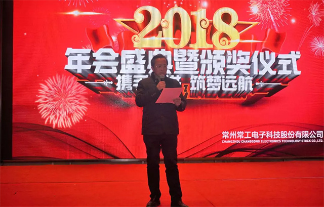 2018年2月10日常电股份2018年年会盛典暨颁奖盛典盛大开幕2017年,注定是公司承前启后、继往开来的一年2018年,注定是不平凡的在这一天,所有常电人及支持常电发展的所有人共同举杯,见证这继往开来的年会盛典 年会第一部分是颁奖盛典,首先是公司董事长李新宏先生致辞,总结了2017公司发展现状,展望了2018年公司未来规划!接下来,由公司总经理姚荣先生颁发优秀员工和先进个人。①优秀员工②先进个人