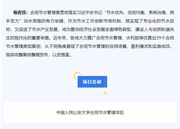 【全国节水办典型案例】中国人民公安大学合同节水管理项目